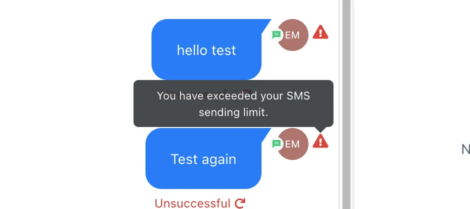 1. Conversation Error: You have exceeded your SMS sending limit.